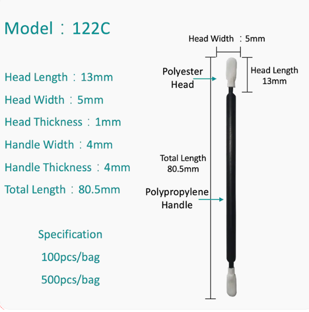 Un vantaggio significativo del tampone in schiuma senza polvere a doppia testa è la sua capacità di pulizia di grande area. Un'estremità del suo design è generalmente più ampia, adatta alla pulizia di un'area più ampia. Che si tratti di pulizia della superficie o parti relativamente piatte, questo design può coprire rapidamente l'area di pulizia, evitando il problema di utilizzare più strumenti per pulire separatamente. Rispetto ai tradizionali strumenti di pulizia a testa singola, il design a doppia testa aumenta non solo la velocità di pulizia, ma rende anche il lavoro di pulizia più fluido, evitando il problema di cambiare ripetutamente strumenti.